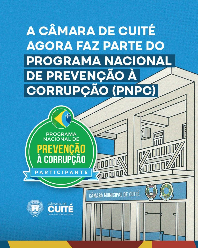 A Câmara de Cuité aderiu ao Programa Nacional de Prevenção à Corrupção (PNPC), que tem como objetivo implementar um conjunto de práticas de integridade, a fim de reduzir os níveis de exposição à fraudes e corrupção nas três esferas e nos três Poderes.