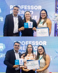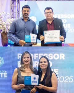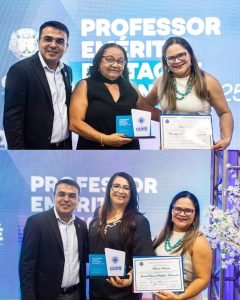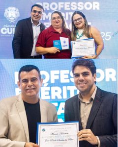 Professores das redes municipal e estadual foram homenageados através de indicações dos vereadores e vereadoras, mas também tivemos prêmio para os profissionais que conquistaram aposentadoria em 2024 e 2025, afinal, eles concluíram uma missão e também merecem todo nosso reconhecimento.